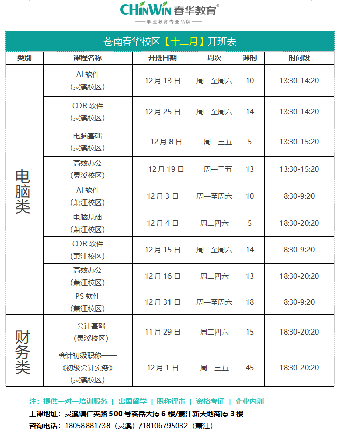 上一篇:慈溪春华x观城春华校区【十二月】开班表