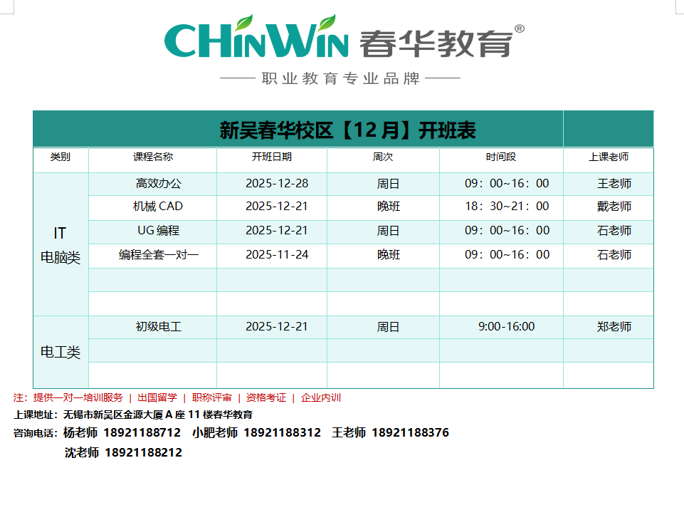 新吴春华校区【十二月】开班表