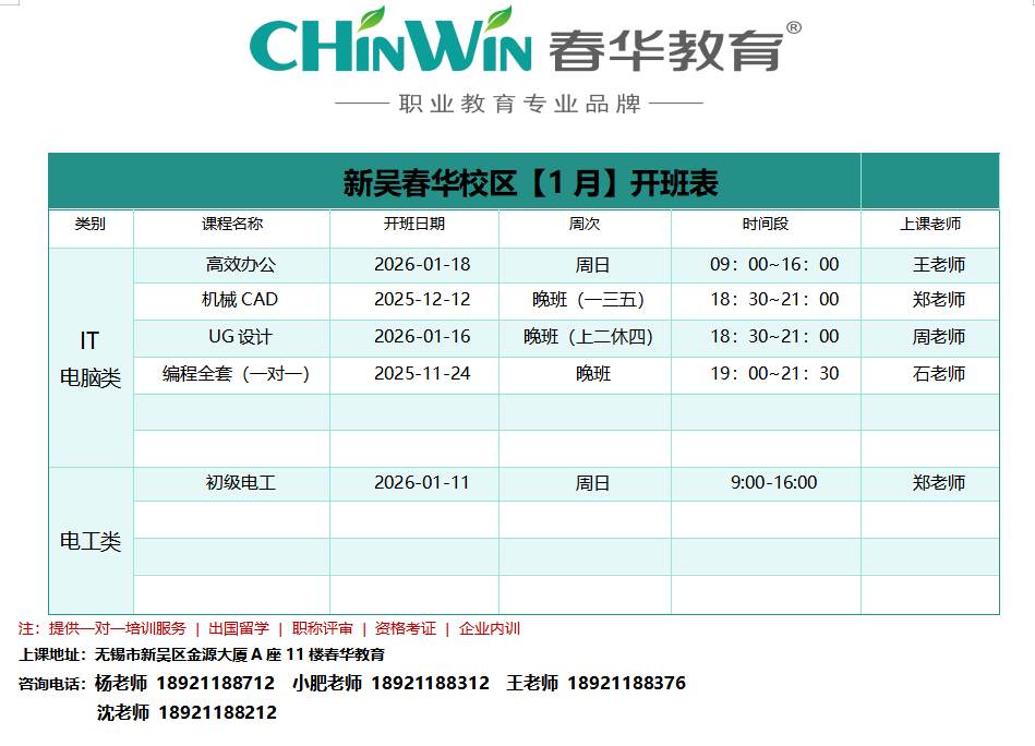 新吴春华校区【一月】开班表