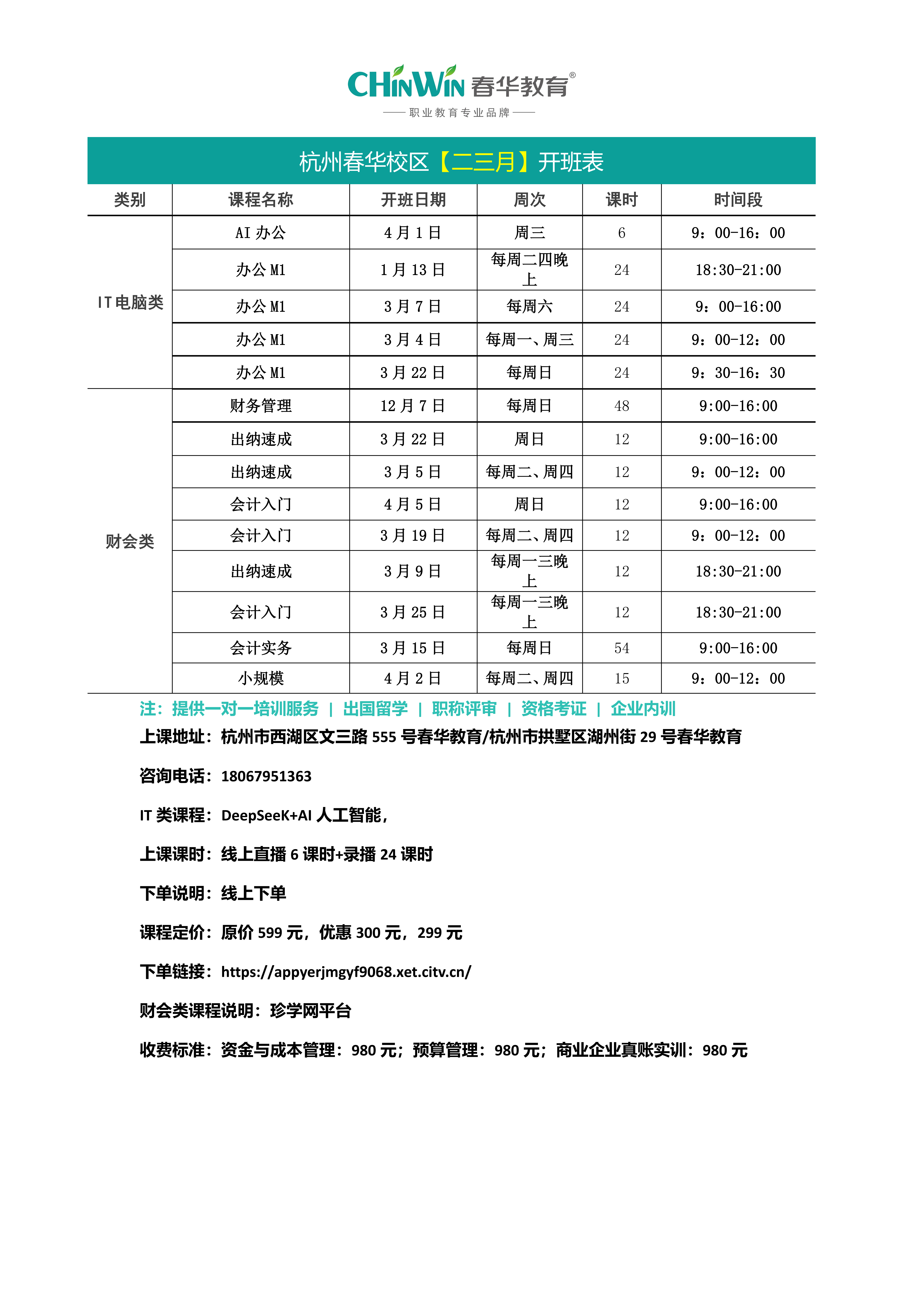 瓯海春华【3月】开班表