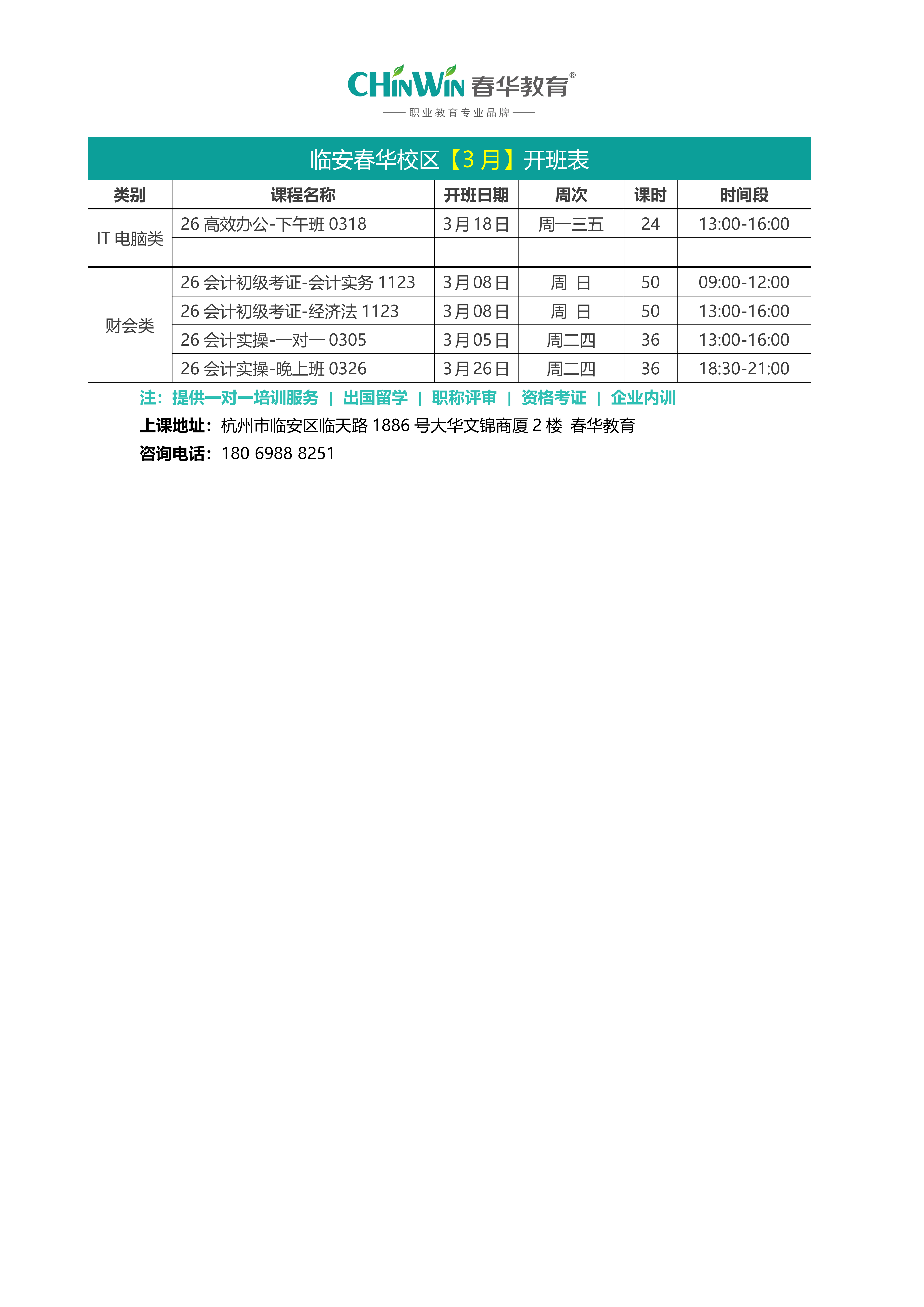 临安春华校区【三月】开班表