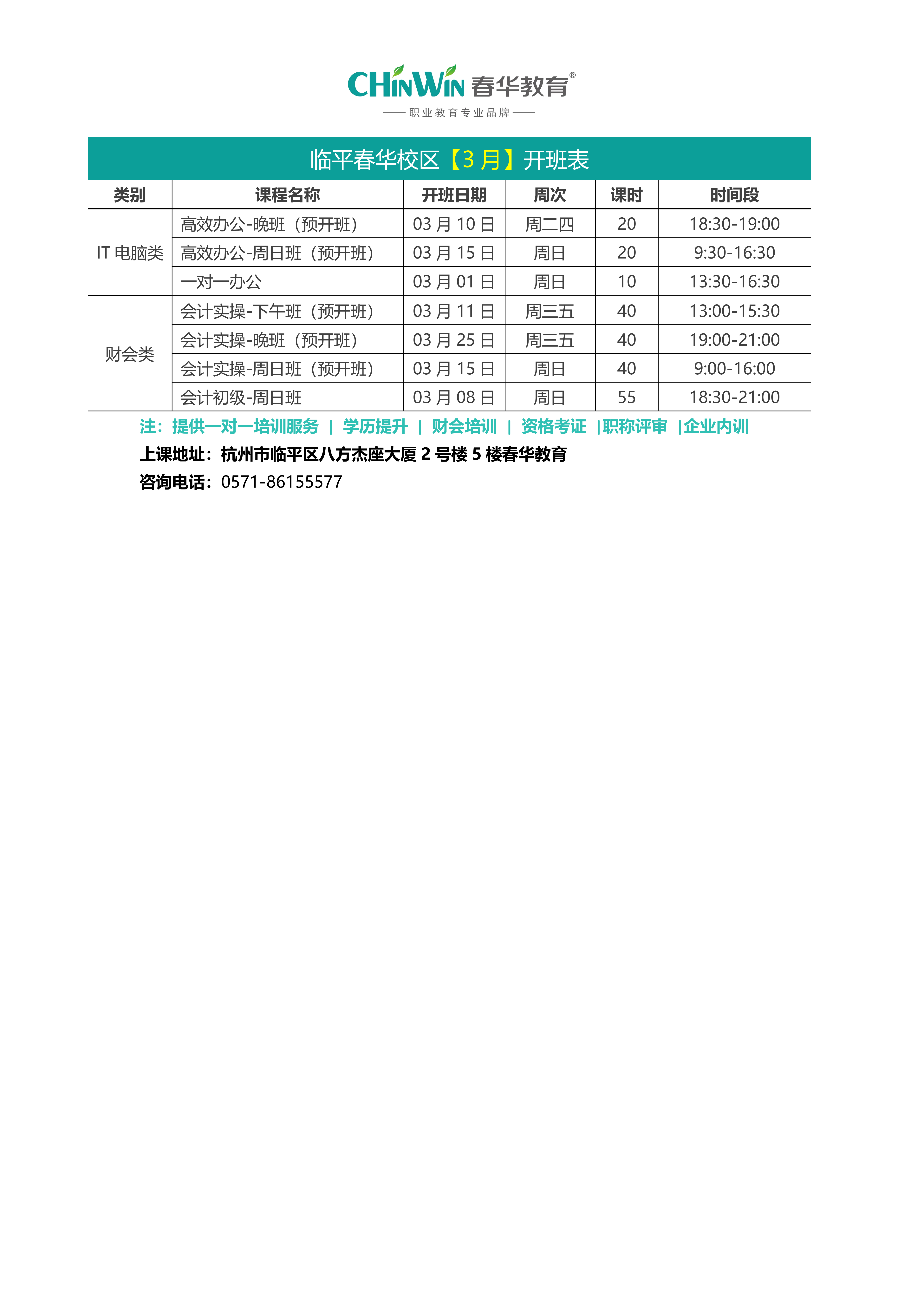 临平春华【三月】开班表