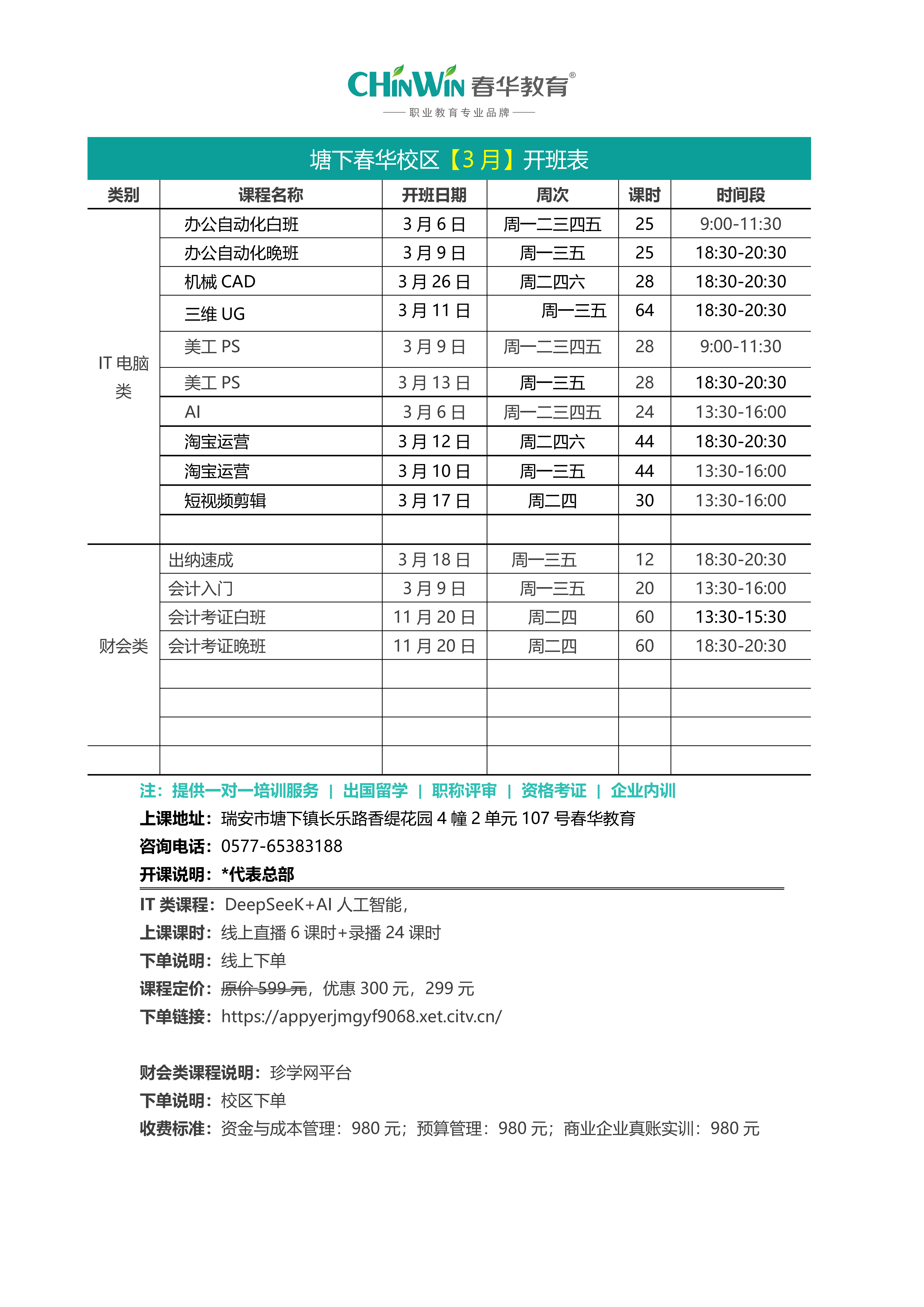 瑞安春华【3月】开班表