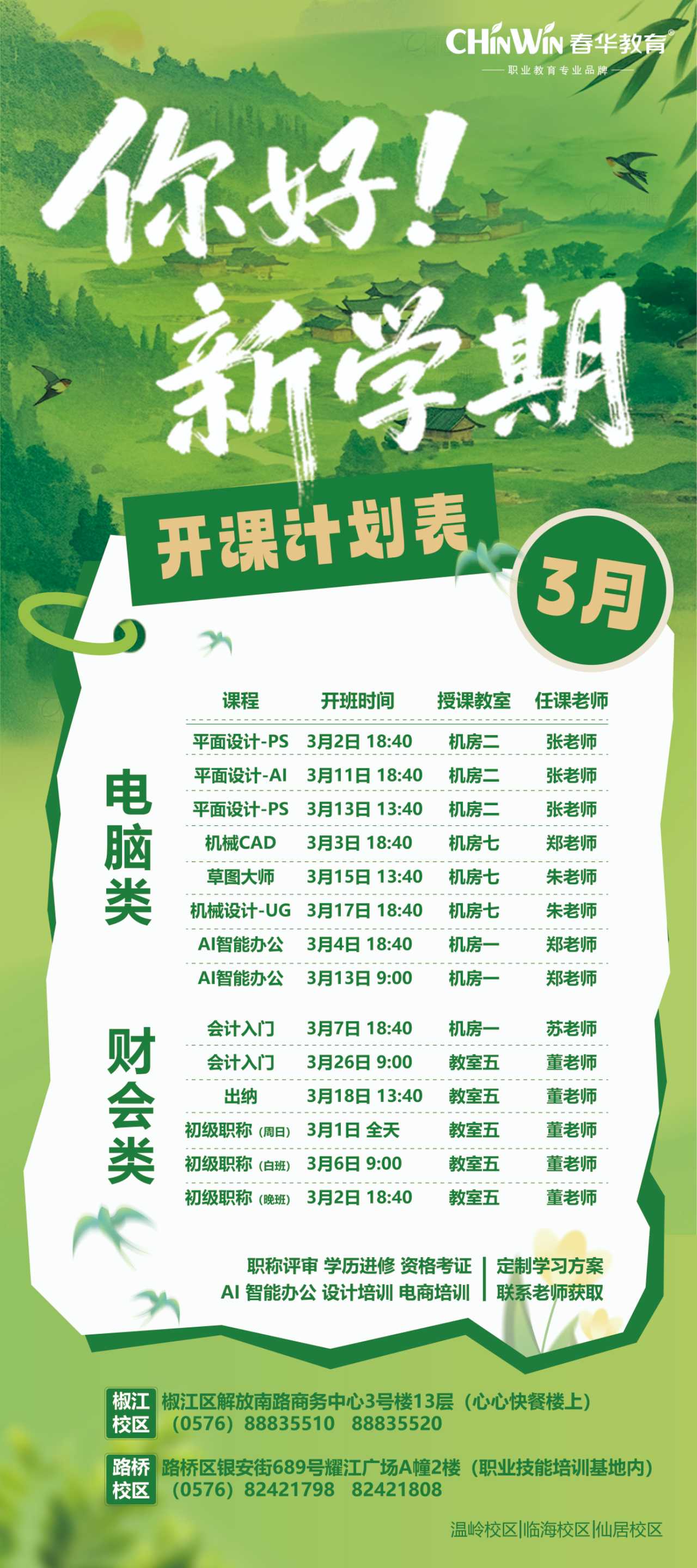 鄞州春华【3月】开班表