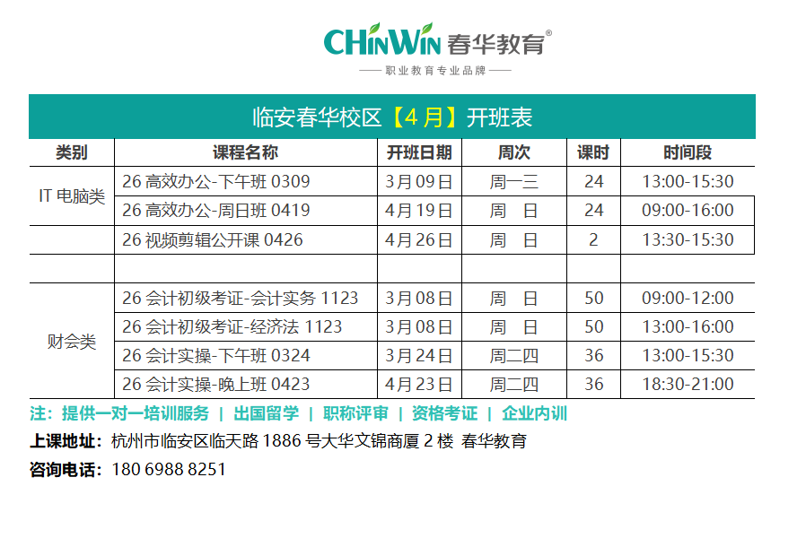 临安春华校区【四月】开班表