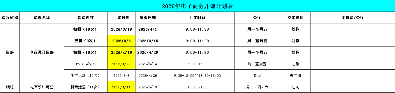临沂春华校区【四月】开班表