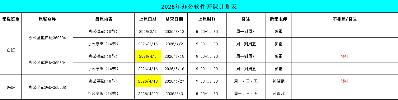 龙港春华校区【四月】开班表