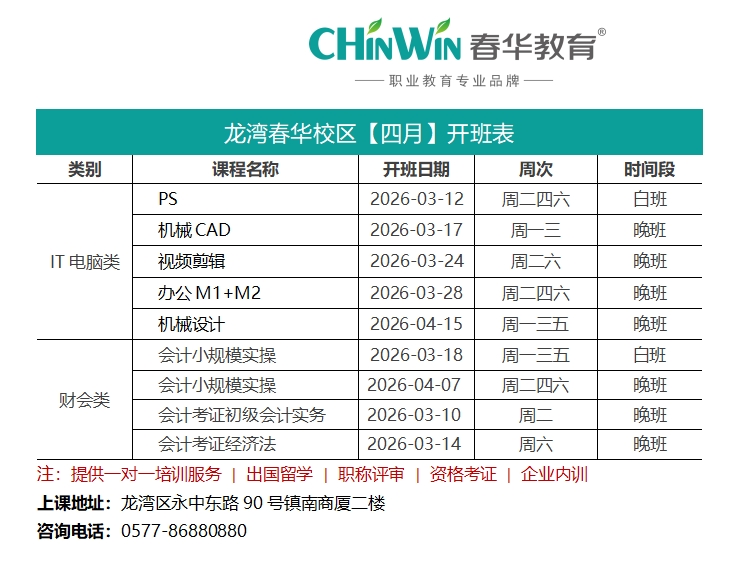 龙湾春华校区【四月】开班表